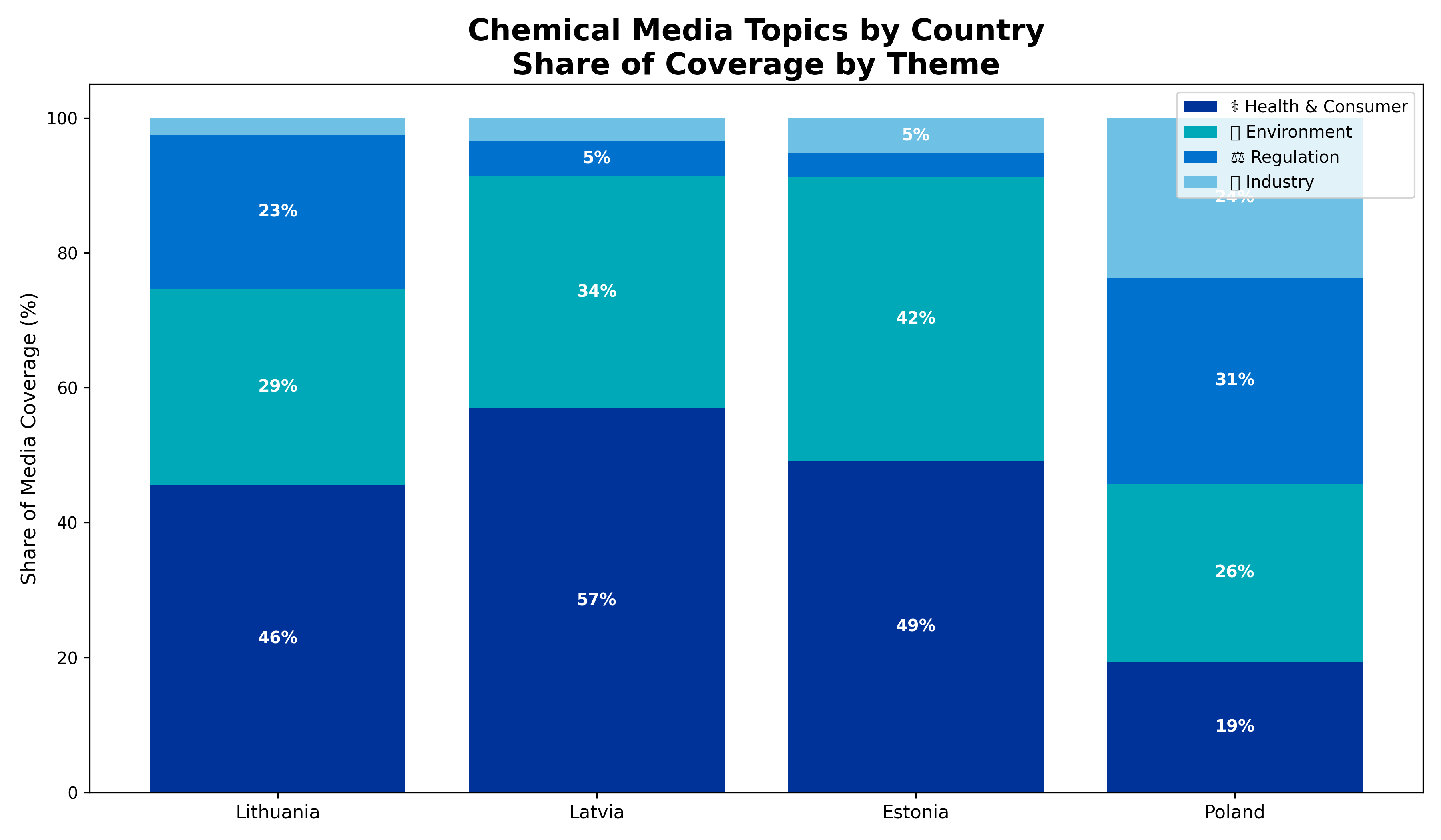 As part of the LIFE FitforREACH-2 project, project partners carried out a review of how chemical-related topics are reflected in national media. The analysis covered press reporting in Lithuania, Latvia and Estonia, as well as in Poland, with the aim of identifying common trends, shifts over time and national differences in how chemicals are framed in public discourse.